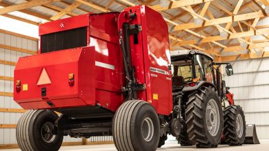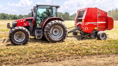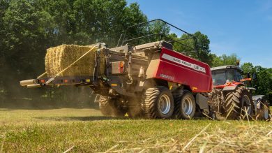The ultra-efficient Massey Ferguson RB V Series round baler is ideally suited for dairy farms or cow/calf operations that need a rugged design to stand up to rigorous baling schedules.